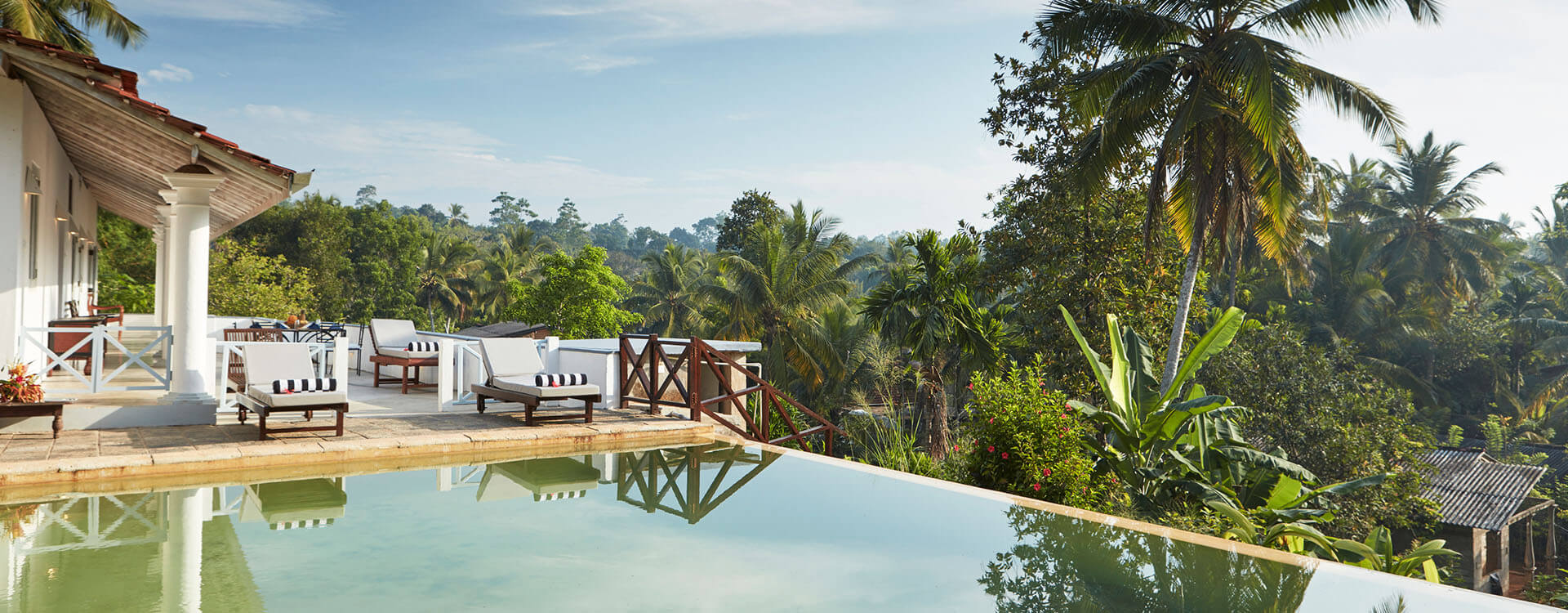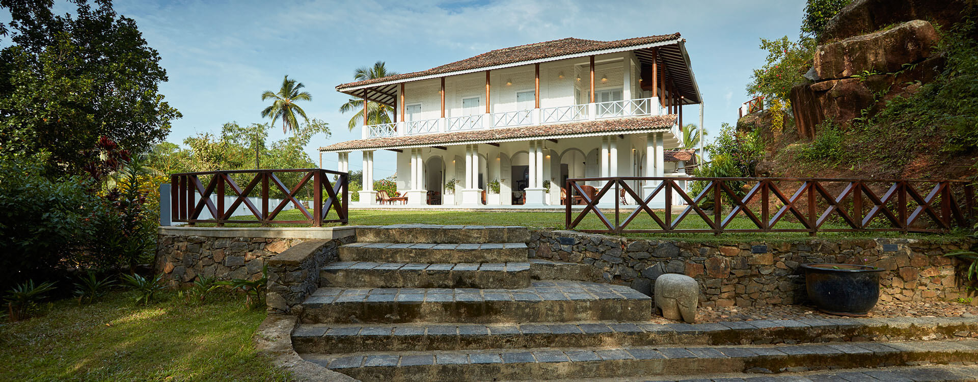 Pooja Kanda in Sinhalese means ‘hill of worship’ and this five-bedroom villa is indeed an idyllic temple of tranquility. Designed in Dutch-colonial style, the villa is majestic and spacious, wrapped with verandas and balconies upstairs and down. Calming interiors spill seamlessly onto the garden and ease you gently into a state of relaxation and renewal.